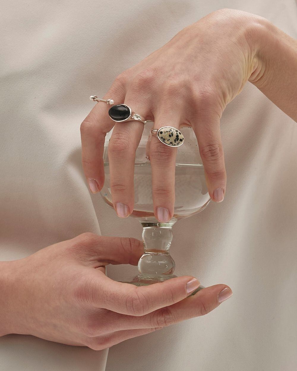 華奢でミニマルなデザインが魅力のリング。指を細く綺麗に見せてくれるディテールで、バーのサイドにさりげなくあしらったパールが目を惹くアイテム。お手持ちのリングとのレイヤードもおすすめです。Silver925素材のため、独自のくすみなど経年変化を楽しんでもらえます。ゴールドはSilver925に18Kコーティング。