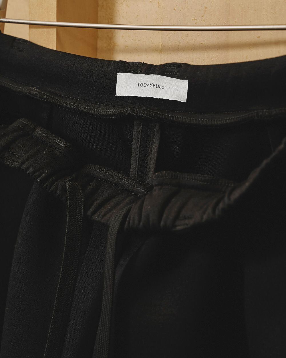 国内の上質なダンボール生地を使用したトラウザーズ。スポンジを挟み込んだ様なクッション性と、ふっくらとハリのある風合いが魅力。履き心地のよさと、履いた時のきれいなシルエットを実現。ウエストはゴム仕様で内側にはドローコードも通っており、サイズ調節が可能です。スニーカー合わせはもちろん、ヒールを合わせたキレイ目なスタイルもおすすめです。