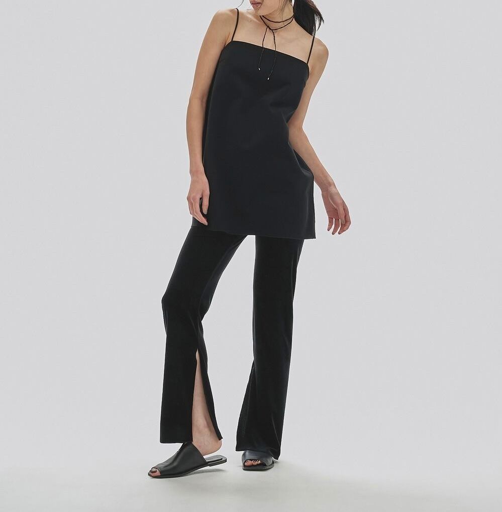 上品な微光沢が魅力の国内生地を使用したベロアスリットレギンス。柔らかく伸びのある素材で、快適な履き心地と美しいシルエットを実現。ウエストは厚みが出ないようにゴムをたたき付け、裾はメロー仕立てにすることで、細部までミニマルに仕上げた一枚。深めに入れたスリットが足のラインをすっきりと見せてくれます。チュニック丈のトップスやジャケットなど様々なスタイルに馴染むアイテムです。
