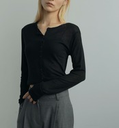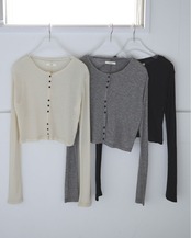 柔らかな薄手のカットソーリブ素材を使用したコンパクトなカーディガン。フロントに連なる小ぶりなボタンが、さりげないアクセントに。端をカットオフでラフに仕上げているのもポイント。上品な透け感がスタイリングに程良い抜け感をプラスしてくれます。羽織としてはもちろん、一枚でプルオーバーとしても着回せ、ジャケットなどのインナーとしても合わせやすい一着です。