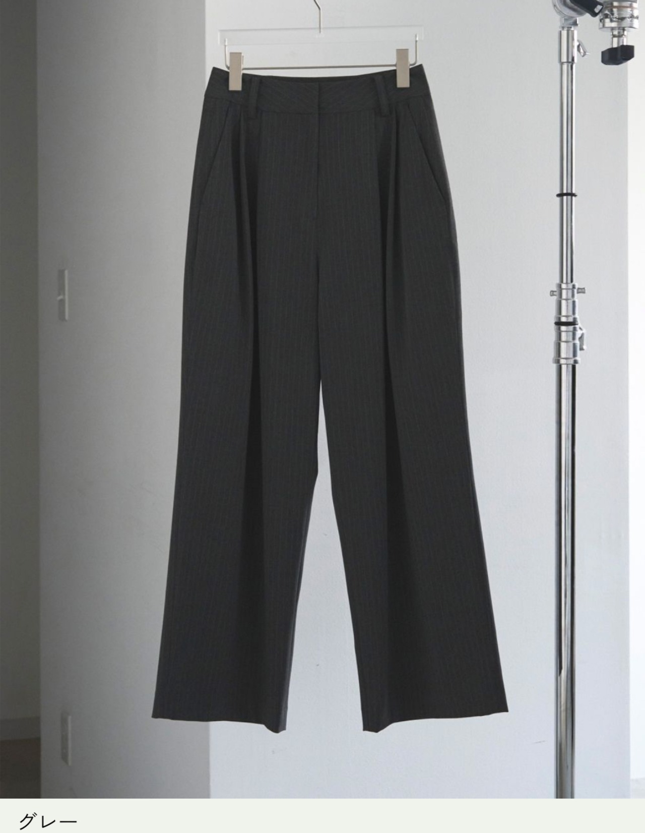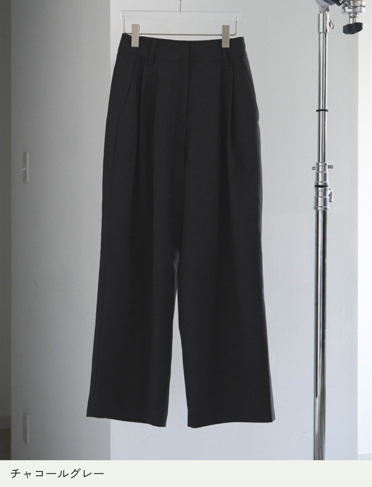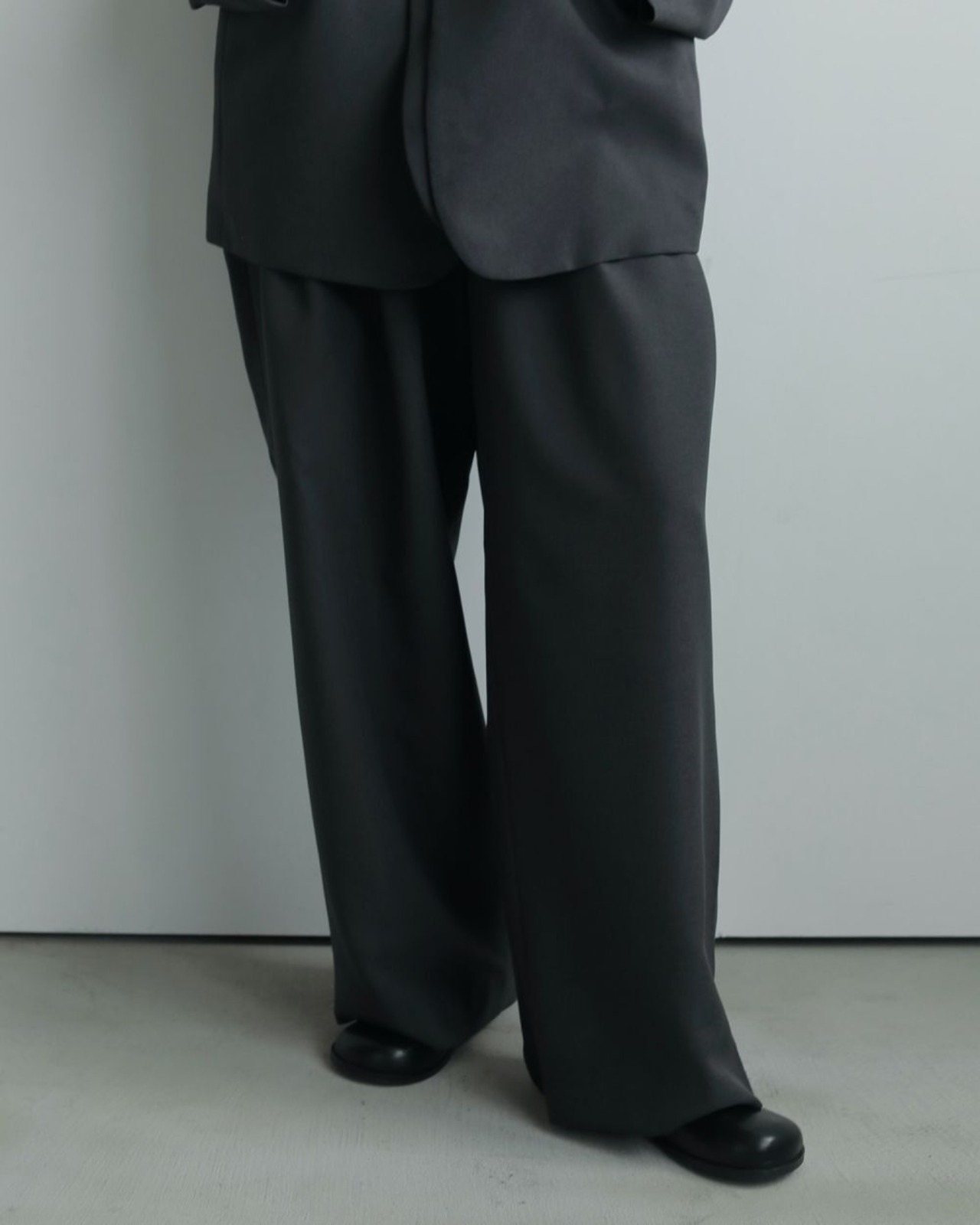 ストレッチ性のある平織りの杢調素材で仕上げたワイドパンツ。ダブルタックデザインで、シンプルなディテールとこなれ感の出るラフなシルエットが、コーディネートの幅を広げてくれる一本。しわになりにくく、肌触りが心地良い点も魅力。同素材のCollarless Over Jacketとセットアップで着るのもおすすめ。グレーは細ラインのストライプ素材。チャコールグレーは少しブルー味のあるなんとも言えない絶妙な色合いで、着るだけで洒落感の出るカラーです。