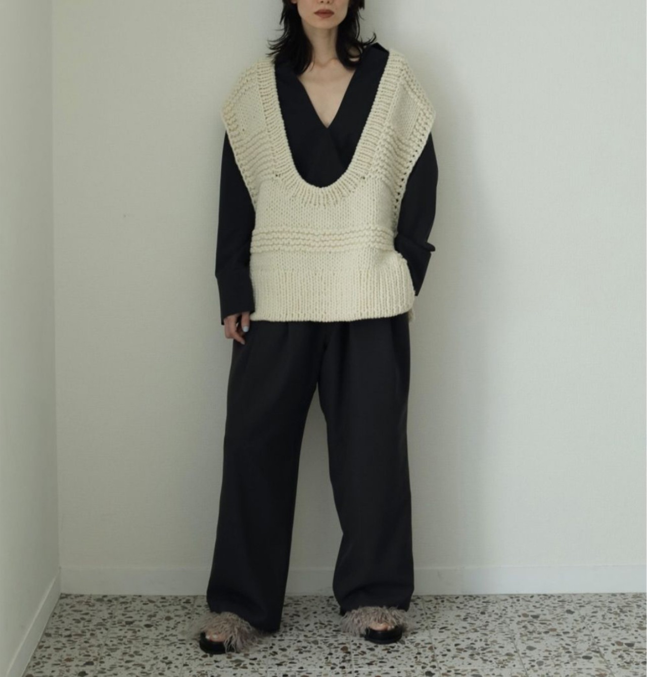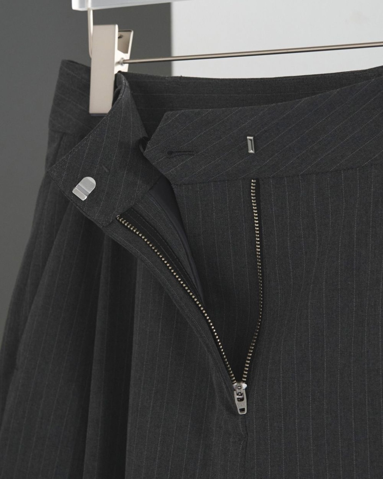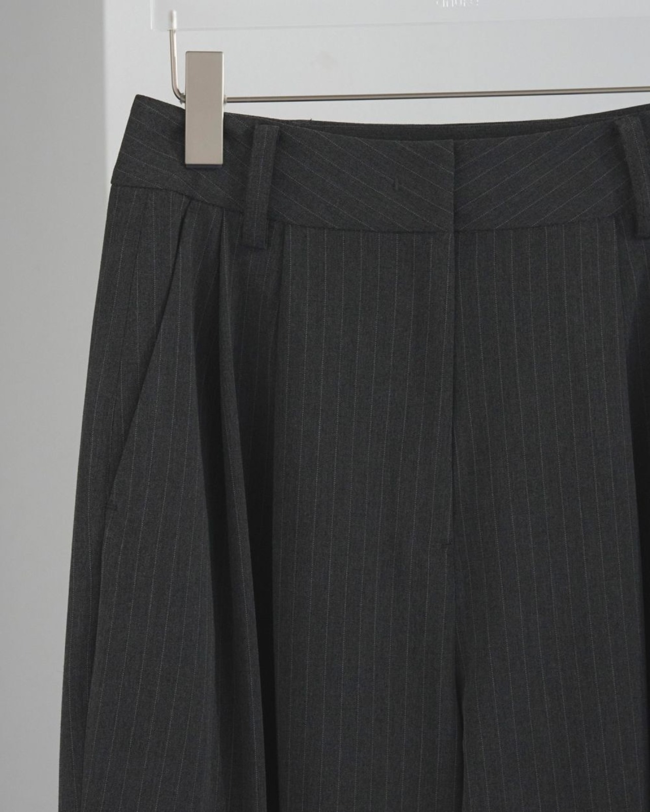 ストレッチ性のある平織りの杢調素材で仕上げたワイドパンツ。ダブルタックデザインで、シンプルなディテールとこなれ感の出るラフなシルエットが、コーディネートの幅を広げてくれる一本。しわになりにくく、肌触りが心地良い点も魅力。同素材のCollarless Over Jacketとセットアップで着るのもおすすめ。グレーは細ラインのストライプ素材。チャコールグレーは少しブルー味のあるなんとも言えない絶妙な色合いで、着るだけで洒落感の出るカラーです。