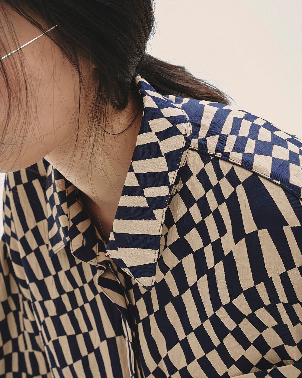 国内で織り上げたオリジナルジャガード生地を使用したオーバーシャツ。立体的な表情のジオメタリック柄と奥行きのある色味が、シンプルなスタイリングに洗練された印象を与えます。ゆったりとしたリラックス感のあるシルエットで、羽織りとしても活躍し、幅広いシーズンでスタイリングを楽しめる一枚です。