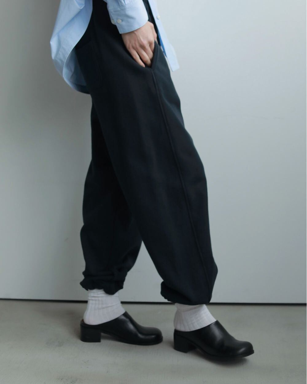 裾がドロストリング仕様のスウェットパンツ。紐が擦らないようにループで留まる仕様です。 太めのシルエットが何にでも合わせやすく、着回せる定番の1本。人気のグレーとネイビーに加え、新色のクリームが登場。コーディネートの差し色としても映えるカラーで、定番カラーをお持ちの方にもおすすめしたい一色。女性らしいアイテムや綺麗目トップスの外しとしてや、ラフなオーバーシャツ、ジャケットなどとも相性良く、着回し力ある1本です。ロングコートを合わせて、同素材のOver Sweat Parkaとセットアップで着るのもおすすめです。