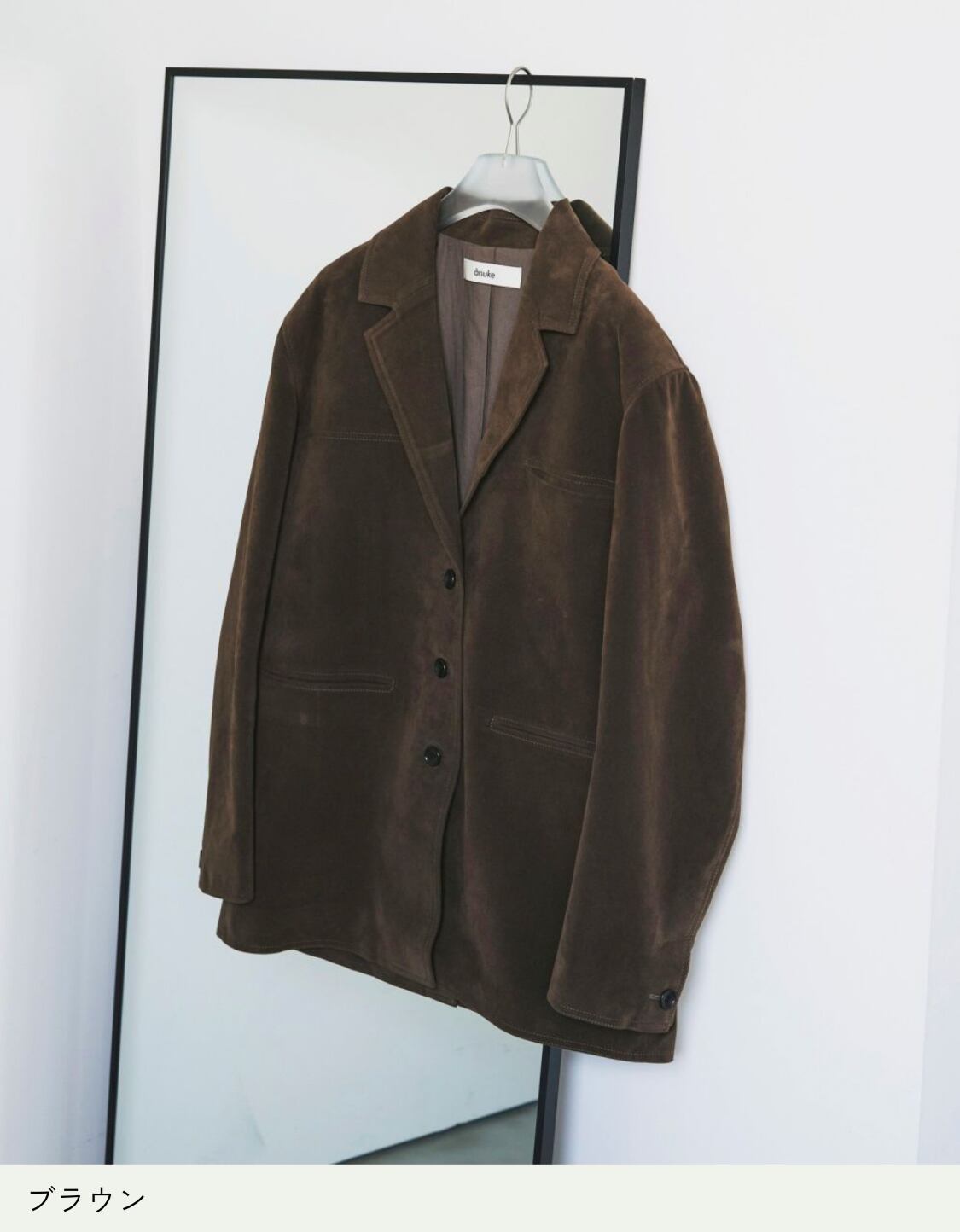 の古着にあるような絶妙な風合いのエコスエード素材を使用したオーバジャケット。マットな質感と適度なハリ感がある生地で、程良くフォルムを出しモードに仕上げています。ゆとりのあるボックスシルエットで、腰回りまであるミドル丈が着回しやすい一枚。切り替えを活かした胸ポケットや、脇ポケットは細めの両玉ポケットで、すっきりとミニマルなデザインにしています。カジュアルにもレディにも、幅広いスタイリングに合わせやすいです。