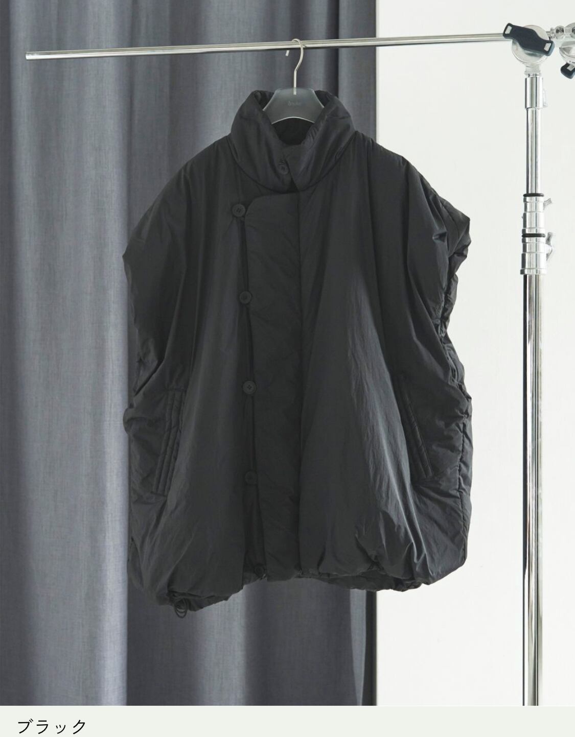 ふっくらと丸みのあるオーバーなシルエットが可愛い中綿ベスト。太巾の前立てとボタンディテールもポイント。裾はゴムコード入りで、お好みのバランスに調節していただけます。寒くなり過ぎない真冬前の羽織として、気温に合わせたレイヤードスタイルで長く着回したい一枚。車移動が多く、しっかりとしたコートやジャケットよりもラフに羽織れるベストが活躍することが多い方にも、おすすめ。室内で暑くなりがちなショッピングモールなどへの車でのお出かけにもピッタリ。ふんわりとしたボリュームがコーディネートに映え、手抜き感なくお洒落見えします。