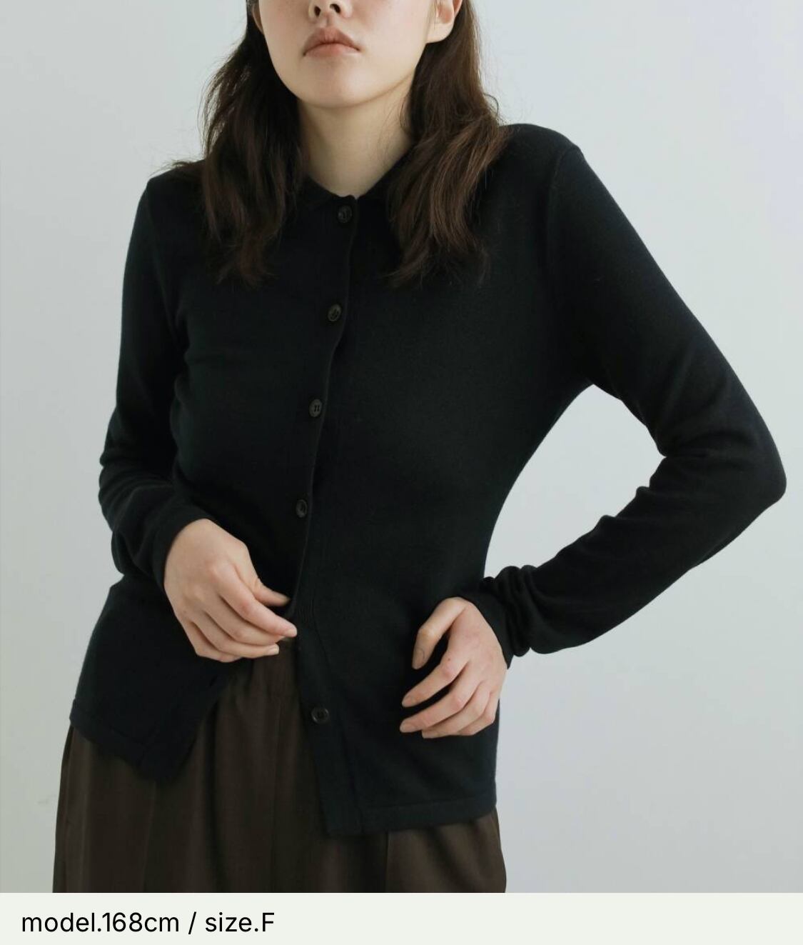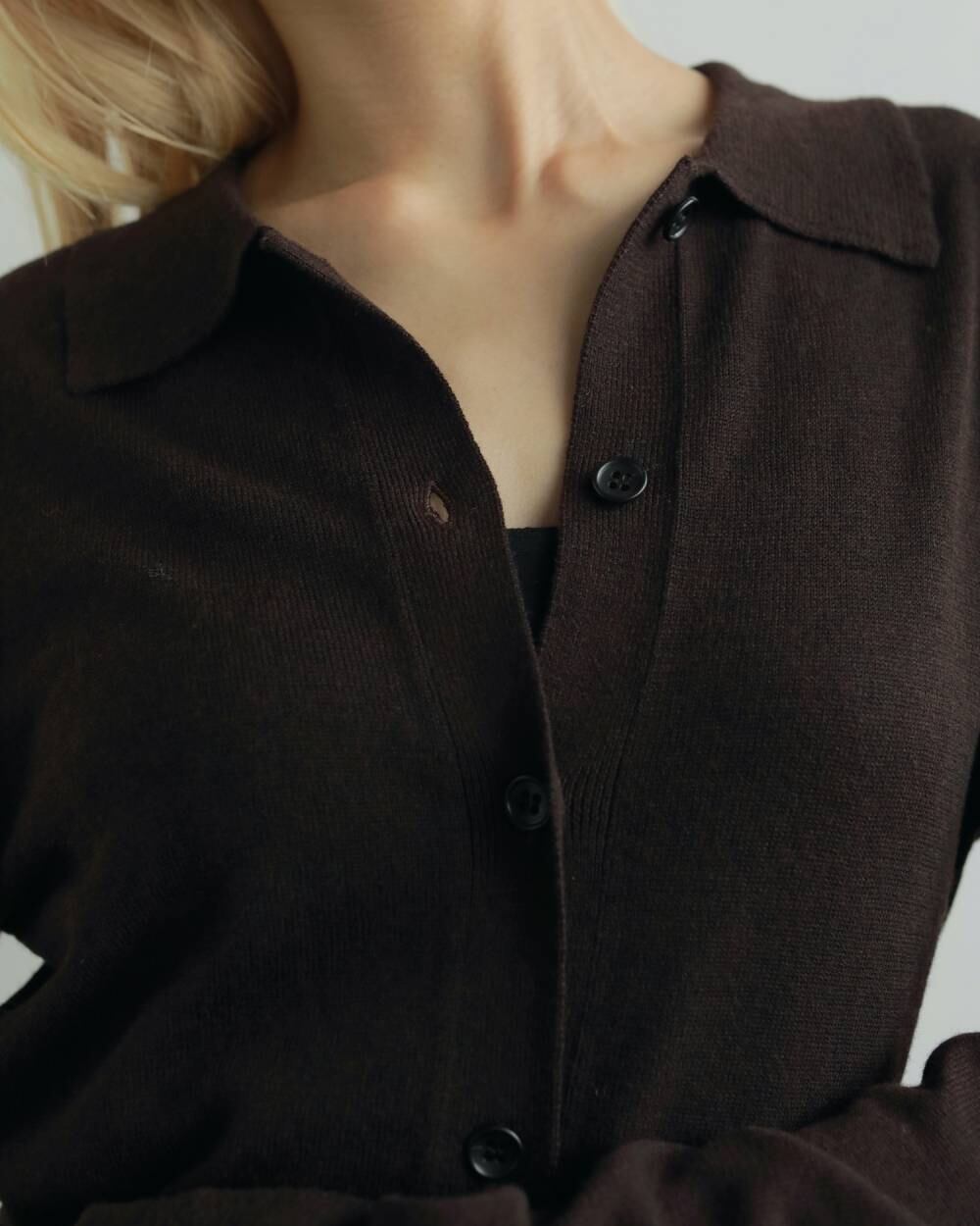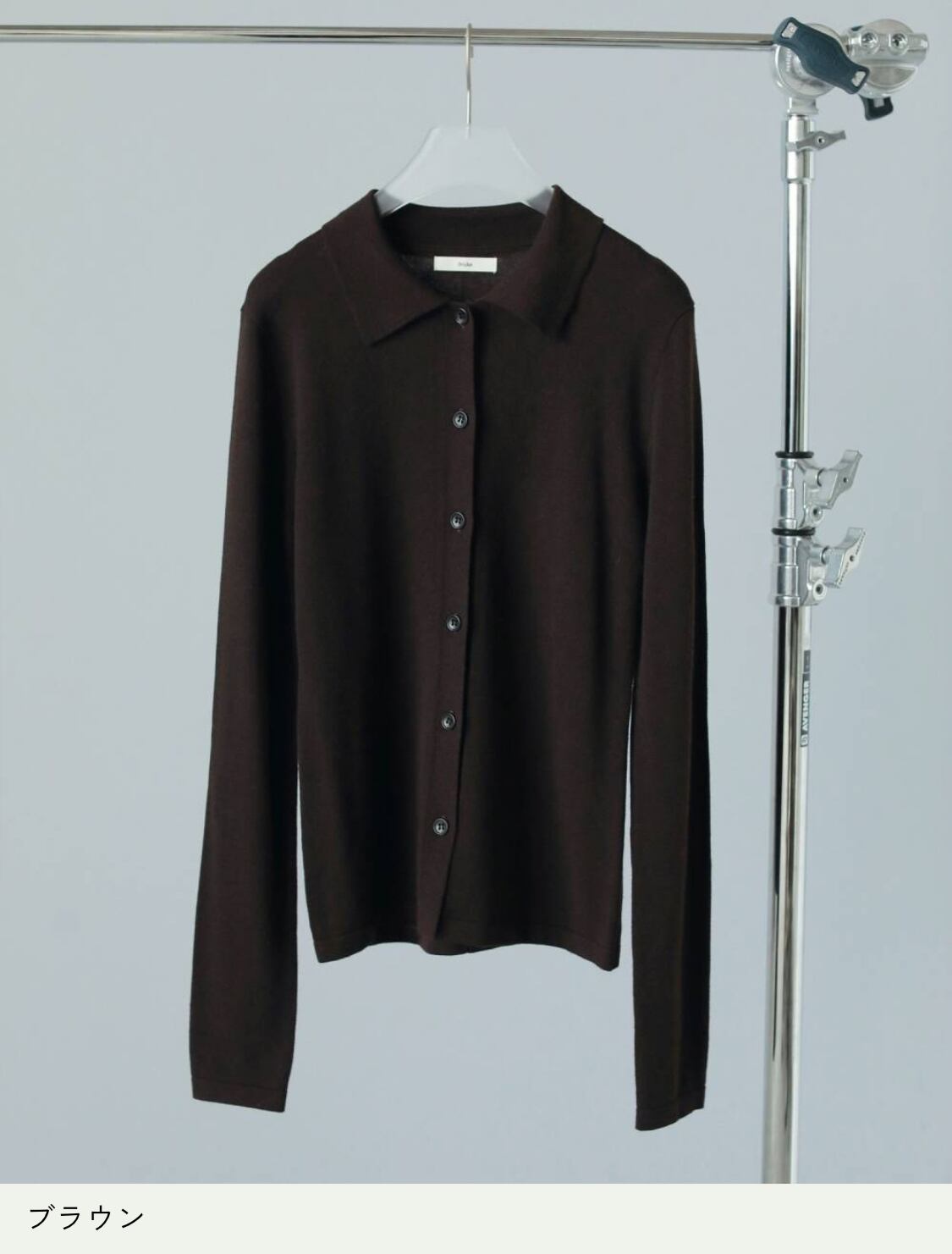 ミニマルに仕上げたニットシャツ。すっきりと着れる無駄のないデザインで、パンツにもスカートにも好相性です。ジャケットの中にサッと合わせていただきやすい一枚。フロントのボタンを少し開けて着るだけで、ニュアンスが生まれ、抜け感あるスタイリングに仕上がります。