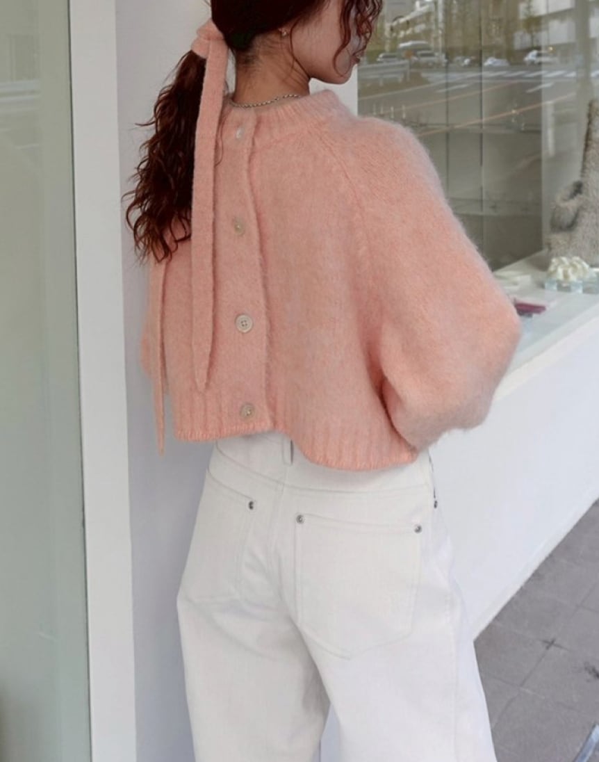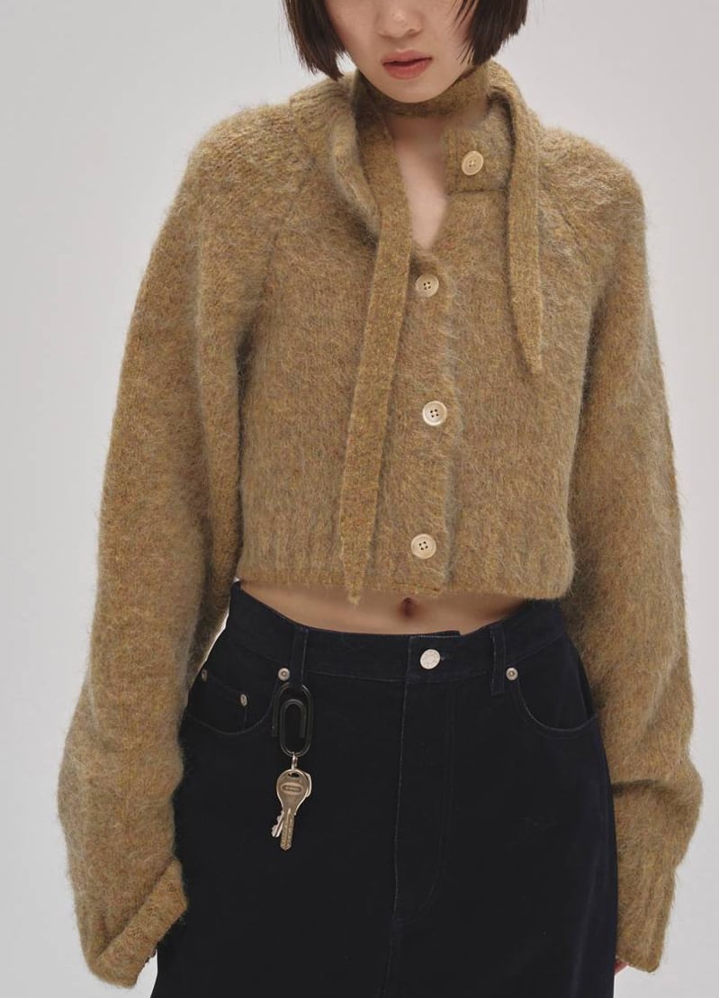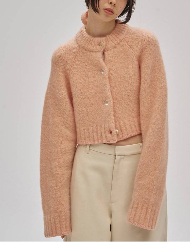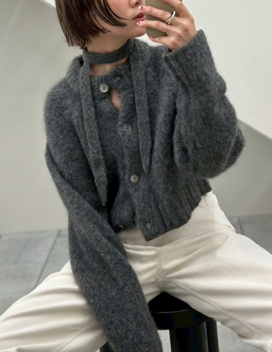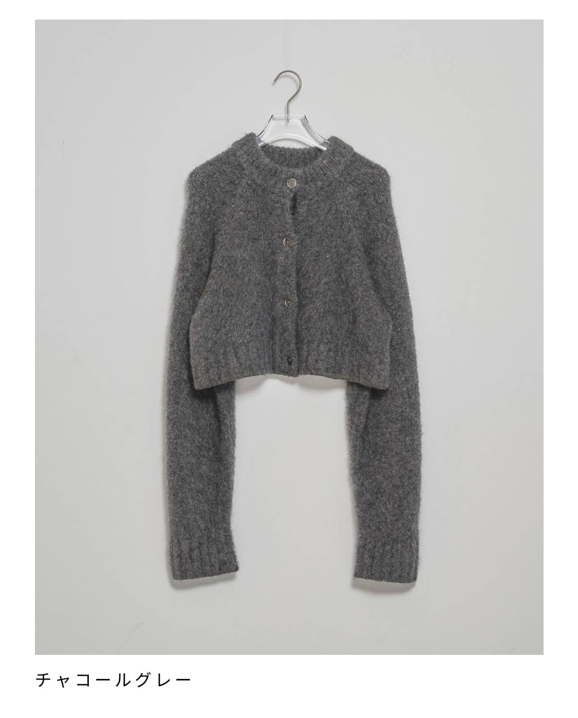 上質なモヘア混糸で編み上げたニットカーディガン。起毛感のあるブラッシュド加工を施すことで、ふんわりとした質感と暖かな肌ざわりに仕上げました。コンパクトなサイズ感で、スタイリングにすっきりと馴染みながらも、鮮やかなカラー展開で存在感をプラス。前後どちらでも着用できる2WAY仕様で、気分やコーディネートに合わせてアレンジが楽しめる一枚です。