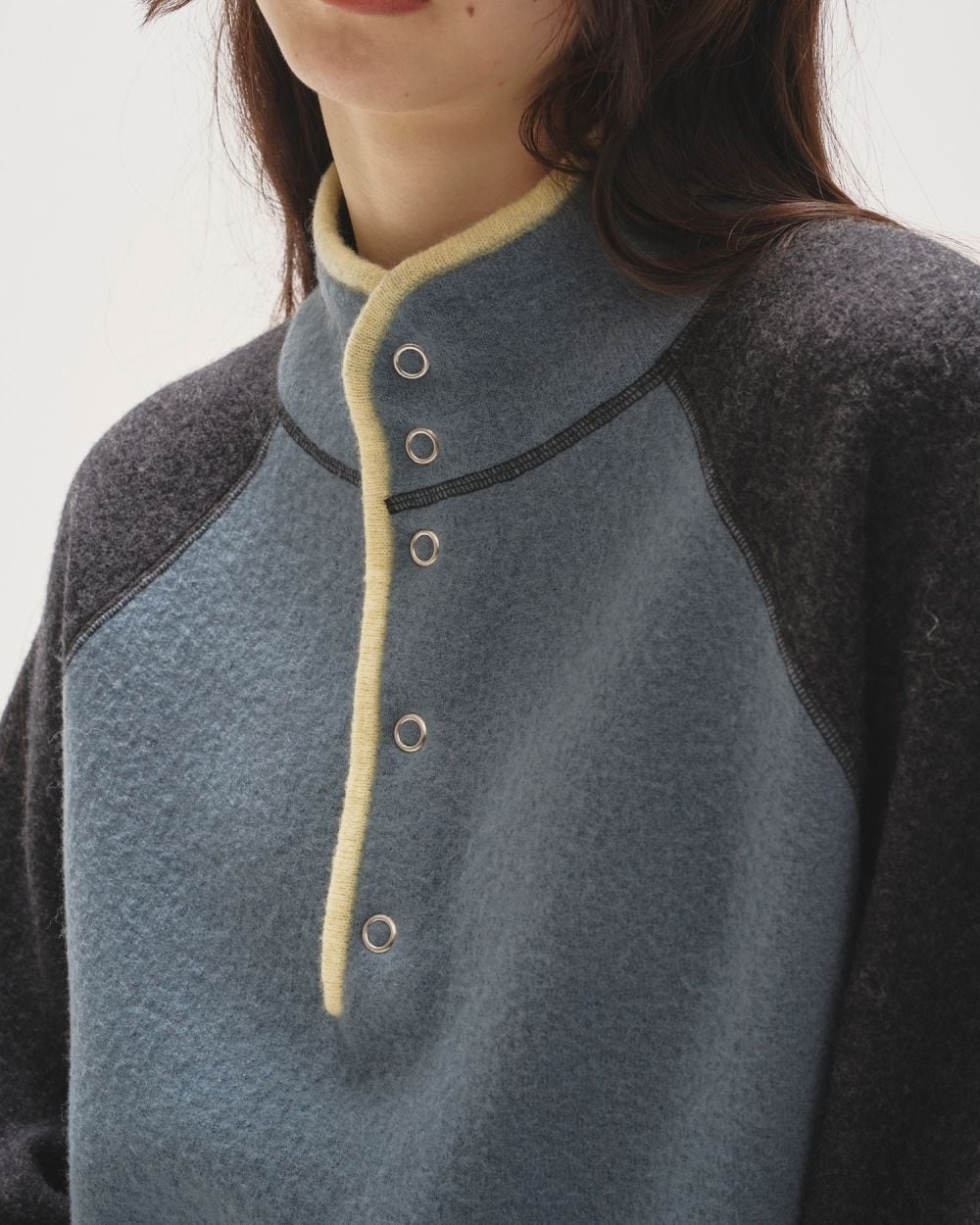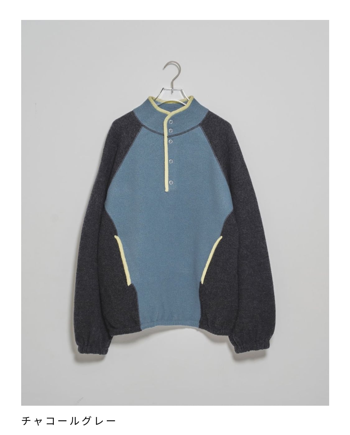 上質なウール100%の糸で編み上げたプルオーバー。圧縮加工によりほどよい厚みがありながらも、やわらかく軽やかな着心地が魅力の一枚です。胸元まであしらわれたリングスナップボタンに加え、ボディとフロントや、ポケット口に配したパイピングを組み合わせた、絶妙な配色バランスがさりげない個性を演出。ディテールまで丁寧に仕上げられており、シンプルながらもスタイリングに程よいアクセントを加えてくれます。