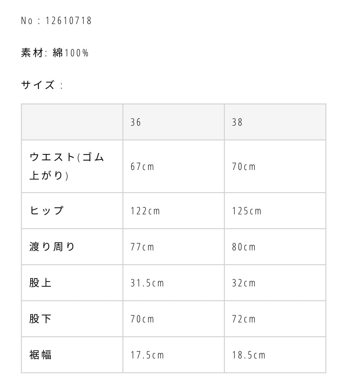 アイテム詳細・サイズ