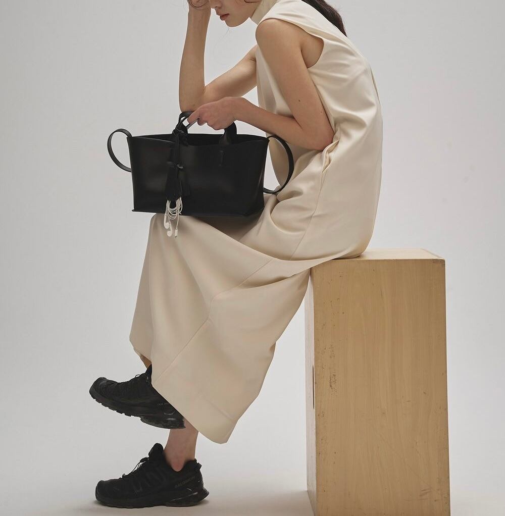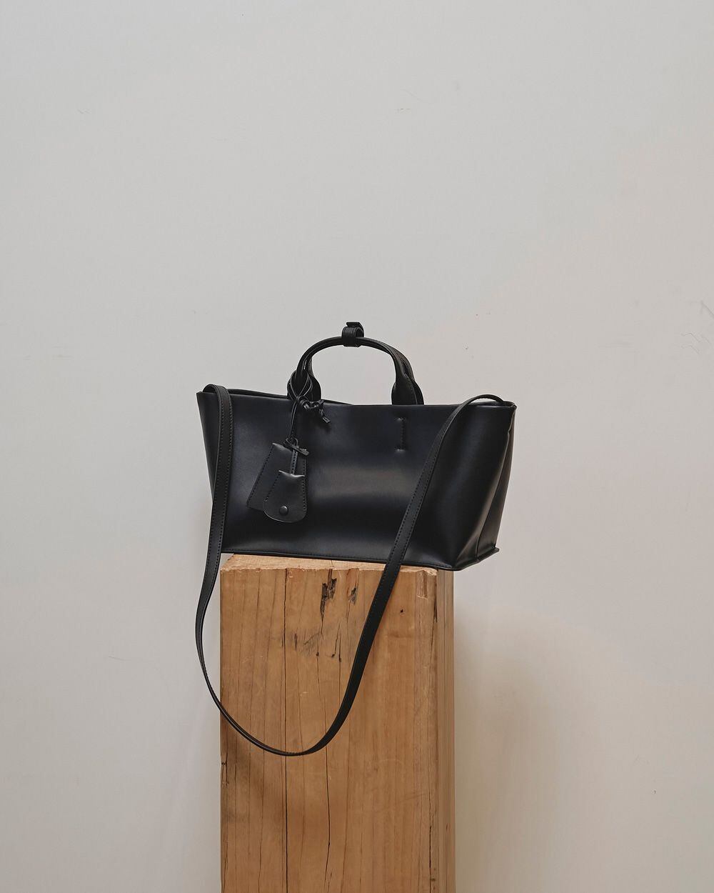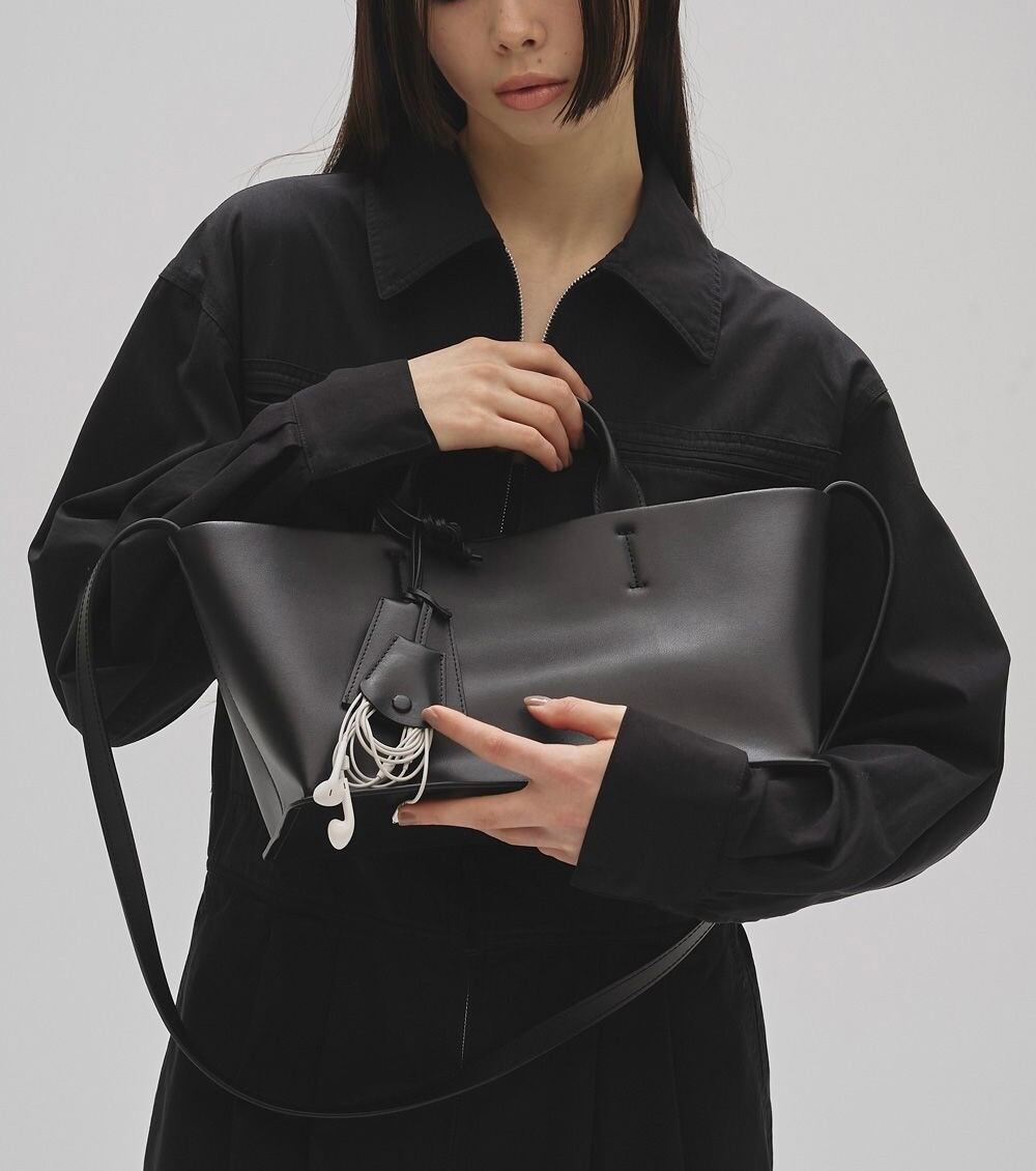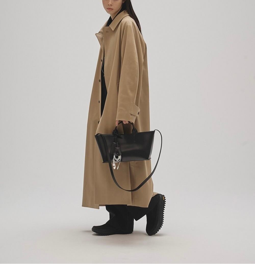 牛床革(本来破棄される革をリメイクし、合成皮革と組み合わせた物。合成皮革よりは革の持つ素材感を生み出すことが出来、経年変化を楽しんで頂けます。)を使用した滑らかな質感が魅力のバッグ。同じ素材で仕立てた鍵などを付けられるチャームやボックスシルエットのボディが目を惹くアイテム。ショルダーストラップ付きで、肩掛けでも手持ちでも使える2way仕様。デイリーからオケージョンまで幅広いシーンに馴染みます。