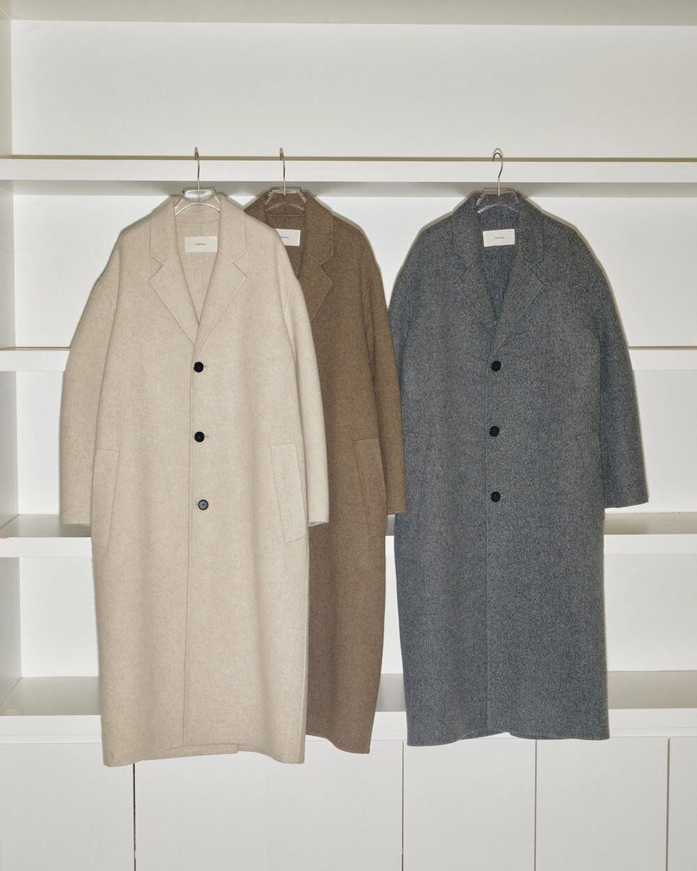オリジナルで織り上げた軽くて暖かいTODAYFULならではのコート。上質なウール生地をさらにグレードアップさせました。リバーステッチ仕様 (職人の手作業でしかできない高度な縫製方法) や立体的なポケット袋布、オリジナルのブランドロゴ入りボタンなど、細部にまでこだわりのつまった一着。生地をたっぷりとぜいたくに使用したオーバーシルエットが魅力です。ミニマムなデザインなのでどんなスタイリングにも馴染みます。